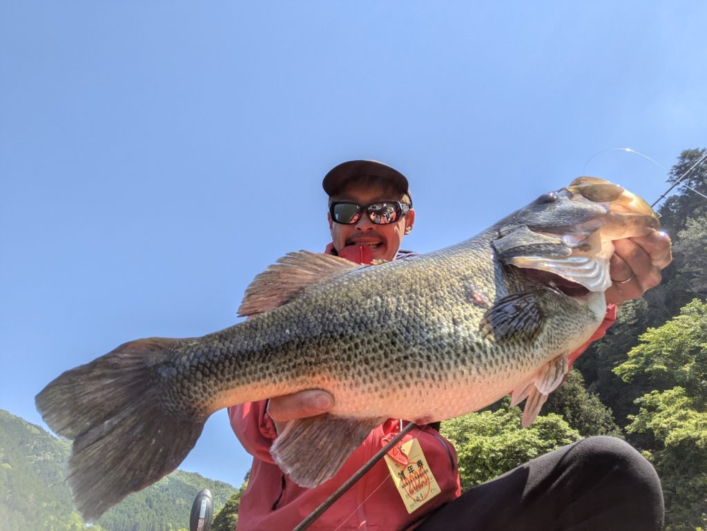 またしても山崎さん、OSP/ドライブシャッド6″のノーシンカーリグにて54cmのビッグフィッシュをキャッチ🔥